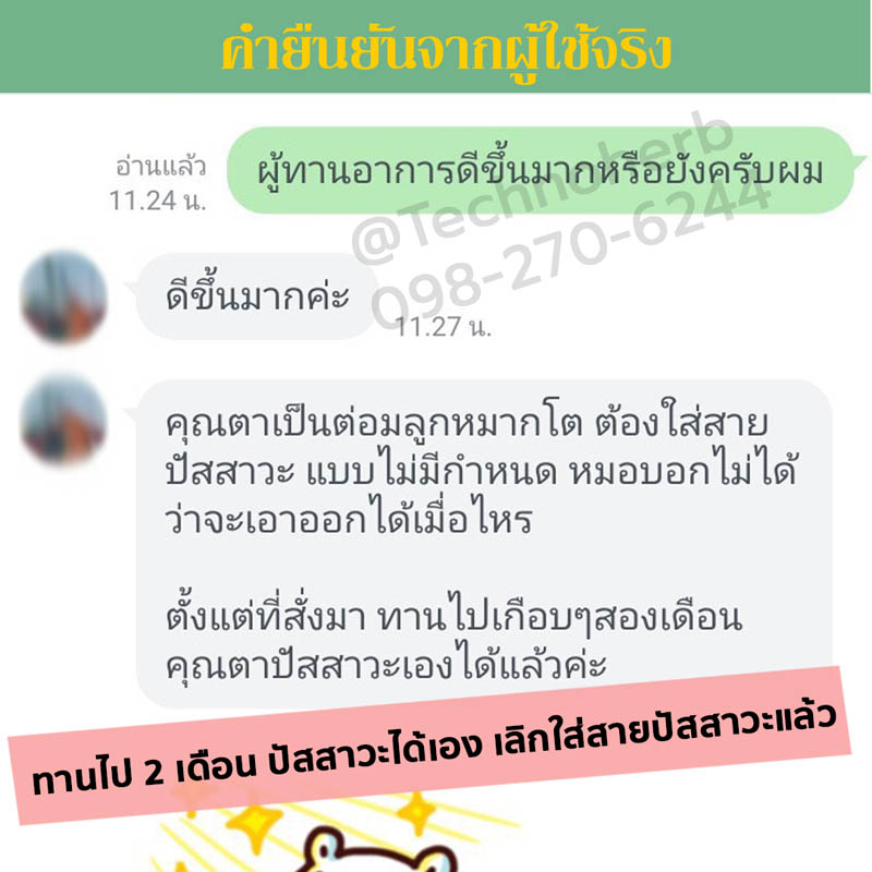 "ซื้อไปให้สามีทาน อายุ 65 ปี หมอตรวจแล้วเป็นต่อลูกหมากโต มีอาการปัสสาวะบ่อย ติดขัด ไม่พุ่ง ไม่สุด บางครั้งมีปัสสาวะเล็ด และกลั้นไม่อยู่ หมอให้ยาต่อมลูกหมากโตมาทาน และนัดผ่าตัด