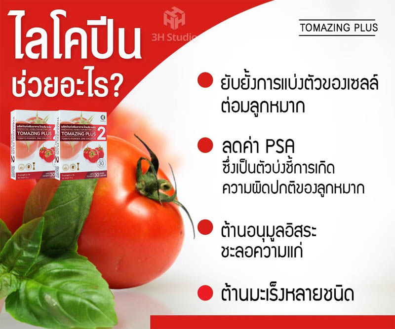 สารสกัดจากมะเขือเทศ ทำหน้าที่ป้องกันการเสื่อมสภาพของเซลล์ ลดความเสี่ยงในการเกิดมะเร็งต่อมลูกหมาก